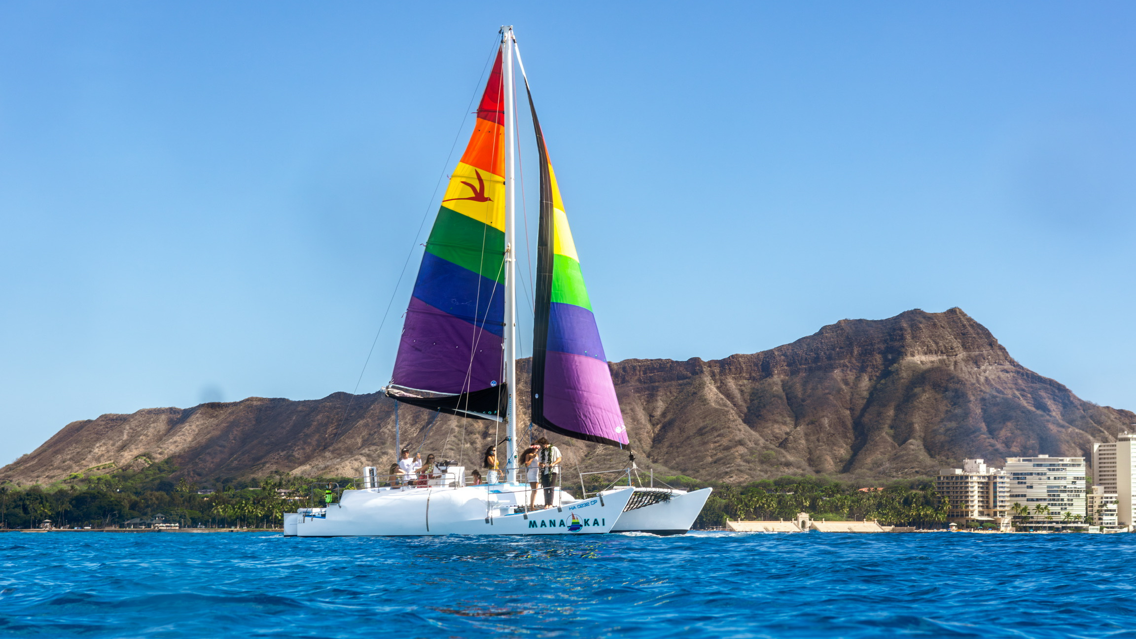 Waikiki Sailing Company offers a unique ocean venue for intimate celebrations, deeply rooted in Waikiki’s sailing heritage. At the heart of these experiences is MANA KAI, our 32-foot traditional catamaran, a vessel that carries not only guests, but generations of ocean knowledge, craftsmanship, and aloha.